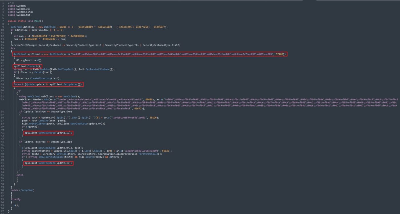It then engages in persistent C2 polling loops, downloading secondary payloads such as Cobalt Strike beacons, Adaptix implants, and pureHVNC backdoors.